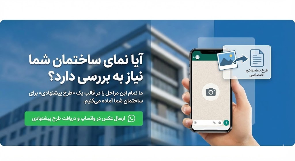 آیا نمای ساختمان شما نیاز به بررسی دارد؟ ما تمام این مراحل را در قالب یک «طرح پیشنهادی» برای ساختمان شما آماده میکنیم. کافیست همین حالا عکس نمای ساختمان خود را در واتساپ برای ما ارسال کنید تا روش اجرای اختصاصی خود و تمام ابزارهای لازم برای یک تصمیم گیری دقیق را دریافت کنید.